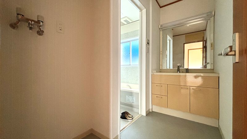 【洗面室】脱衣室と一体になっており、洗濯機置場も付随いたします。現状利用されておりません。
