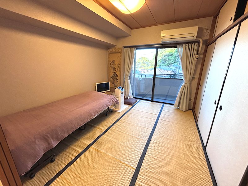 寛ぎの和室6畳です。畳保護の為にカバーを敷いております。