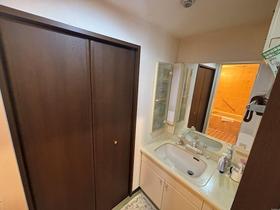 【洗面所】丁寧にお使いの洗面所スペース。収納部分には洗濯機を置くことができ便利です。