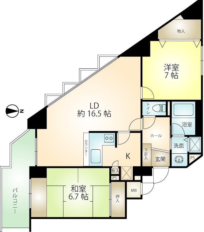 【和室】6.7畳ある和室は使い勝手が良く寝室としても利用できます。