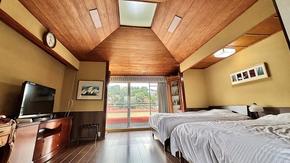 【洋室①】勾配天井がおしゃれな洋室。緑も望むことができ、贅沢です。