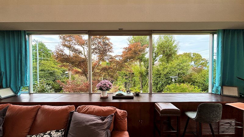 【眺望①】お庭を望む眺望。さながらピクチャーウィンドウです。