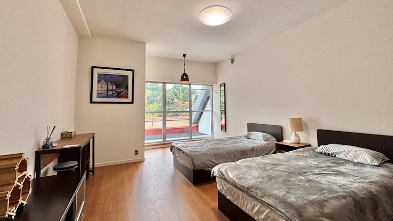 【洋室②】こちらは雰囲気が変わり、白と木を基調としたお部屋です。
