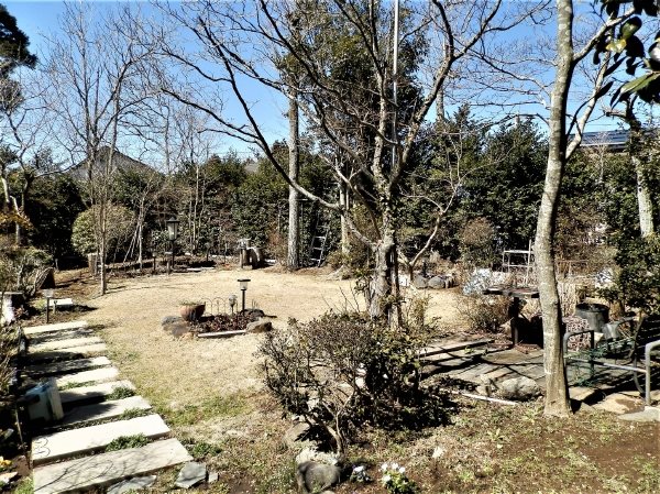 非常にお手入れの行き届いた芝庭のようすです。西側に位置するので、陽当たりも良好です。