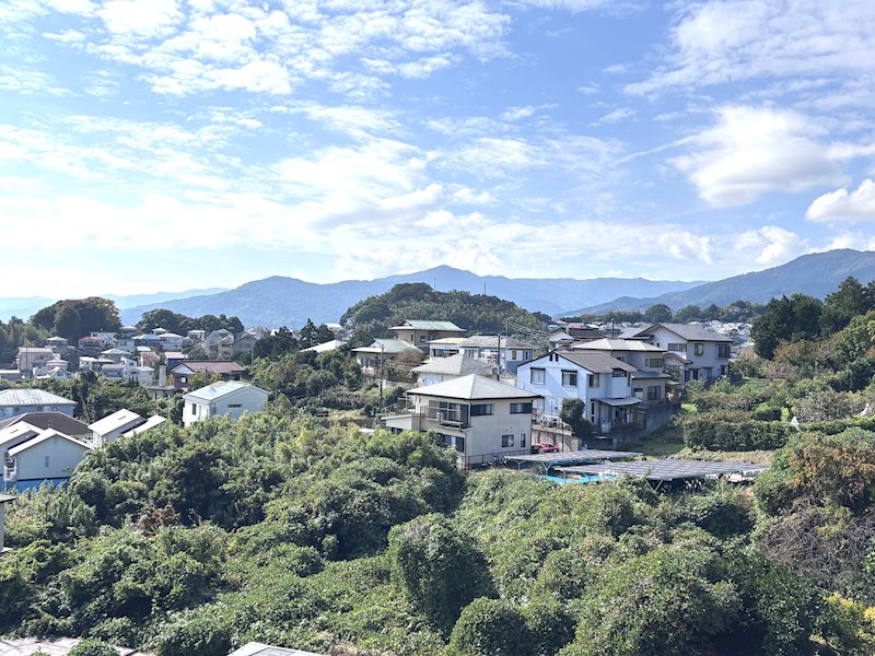 西側の眺望です。湯河原富士と呼ばれる岩戸山が正面です。