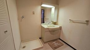 洗面脱衣所。大きいサイズの洗濯機も置くことができそうです。