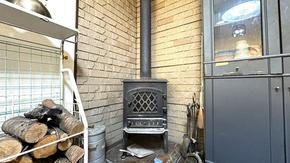 【1階LDK】薪ストーブがございます。体を芯から温めてくれます。