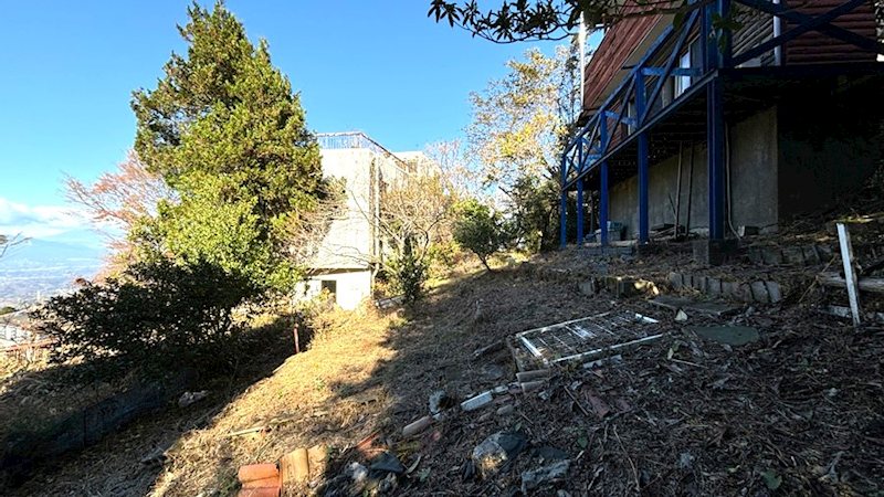 約100坪のなだらかな地面に建つ家屋はコンクリート基礎なので安定しています。晴天時の富士山、駿河湾が見渡せて素晴らしいです、特に夜景は絶景です。温泉の引き込みも駐車場の造成も可能ですので大切にご利用いただける方にお譲りできれば嬉しいです。お庭には柿、ミカン、酢橘、レモン、ビワなどがあり、毎年の収穫が楽しみです。また椿、さざんか、つつじ、山椒、松に紅葉、つげ、シャクナゲなども自生しており本当に心が休まります。別荘として利用をしていましたが、ライフスタイルの変化によりこの度ロイヤルさんに売却を依頼しました。どうぞよろしくお願いいたします。