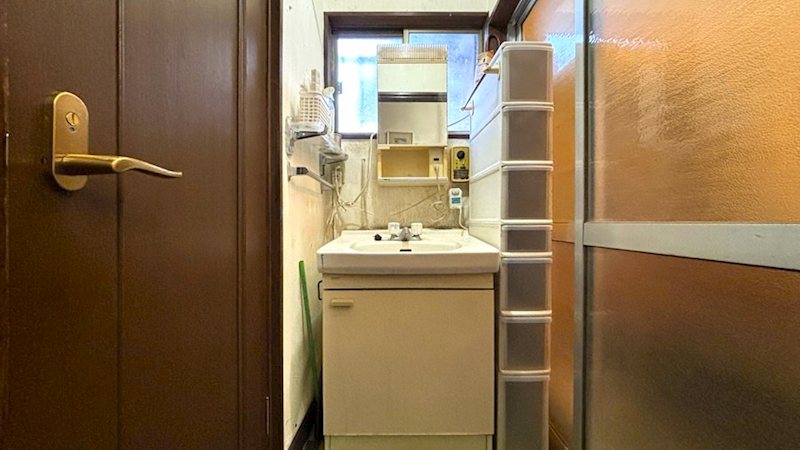 【1階洗面室】コンパクトサイズの洗面化粧台がございます。