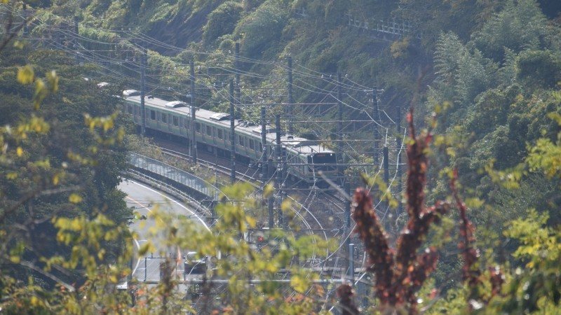 眺望(ズーム):目を凝らすと電車が見え、動きのある景色も楽しめます。