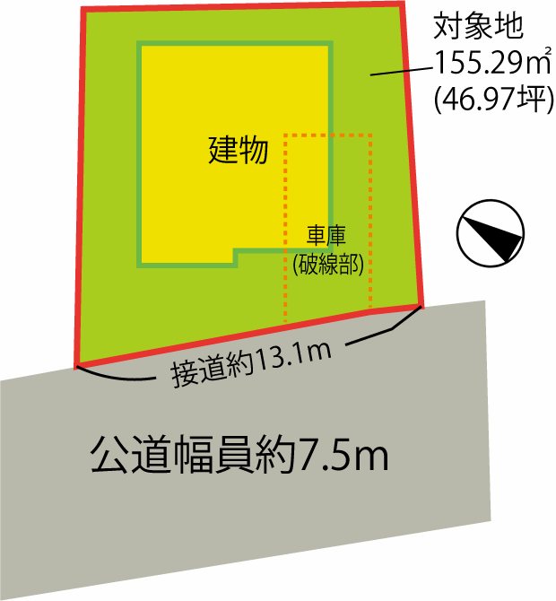 | 主な接道 | 公道、西、幅員:7.5m、接道長さ:13.1m、舗装あり、主たる接道 | ||