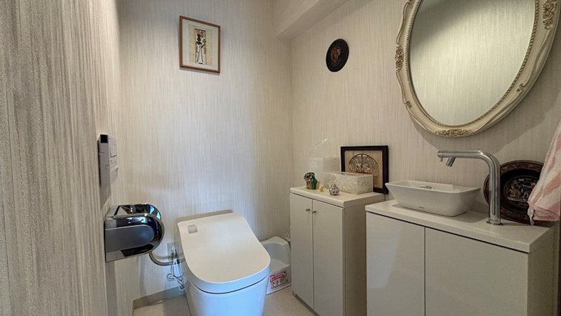 【トイレ】タンクレスタイプのトイレとなります。開放的な空間になっております。