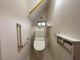 1階のお手洗い。階段下に位置しております。