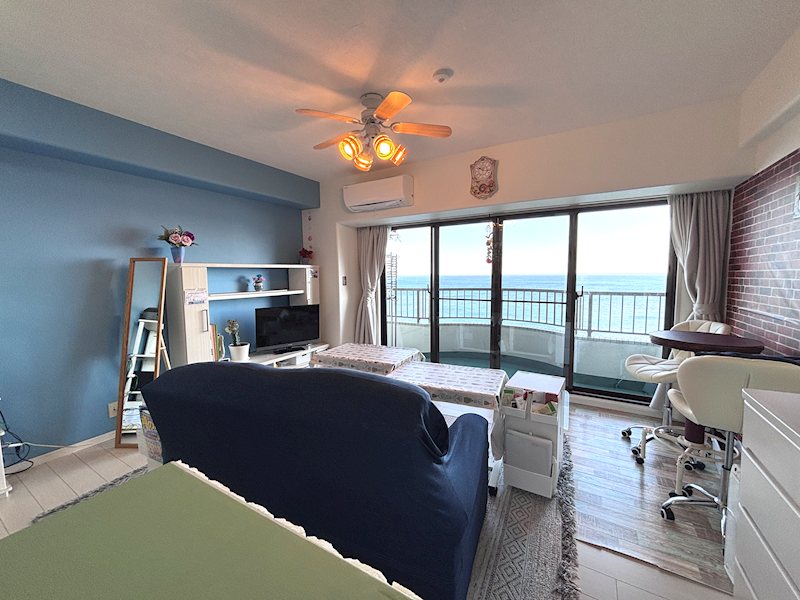 ブルーのアクセントクロスが好印象。都会では味わえないリゾートライフが実現可能です。