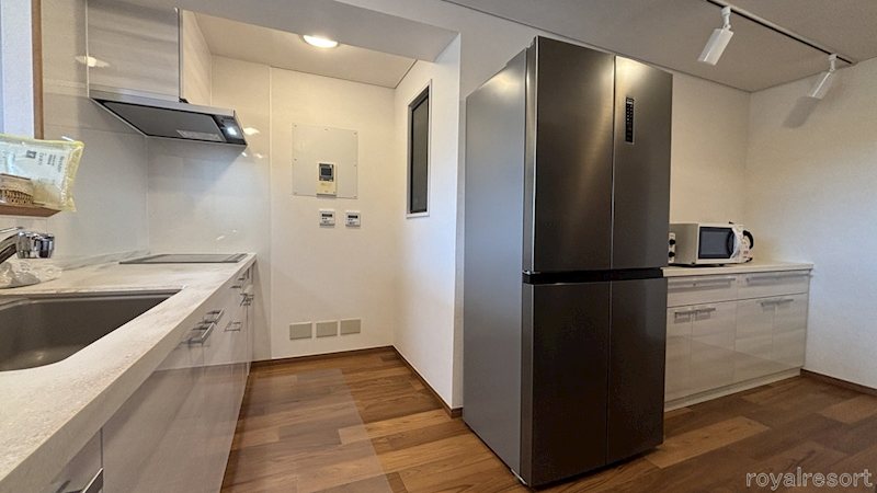 こちらがキッチンになります。対象マンション自体にはガス設備は引き込まれておらず、対象不動産のコンロはIH仕様になります。