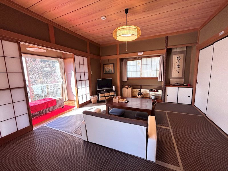 前オーナー様・前々オーナー様が大切にお使いになっていたこともあり、引き継いだ当初からとても状態の良い物件でした。私自身もまずは別荘として1年、その後は旅館として約1年運用しており月に1〜2回は現地に入り、細かな不具合のチェックや清掃などのメンテナンスを続けています。そのため現在も物件のコンディションは良好だと自負しています。建物の表と裏にはどちらにも大きな桜の木があり、表側はソメイヨシノです。裏の桜は、サウナのあるB1デッキをくり抜くように貫いて生えており、3月末〜4月初旬にかけては、満開の桜に包まれながらサウナを楽しむことができます。庭も一年を通じて表情豊かです。