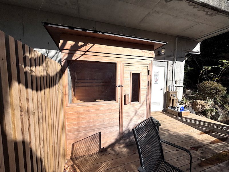 【サウナ】1階デッキに本格的なサウナ。自然郷で思う存分ととのえます。