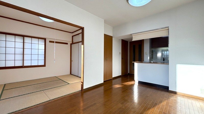 和室:リビングダイニング併設です。雁行式の建物の為、角部屋仕様となっている為、2面採光です。