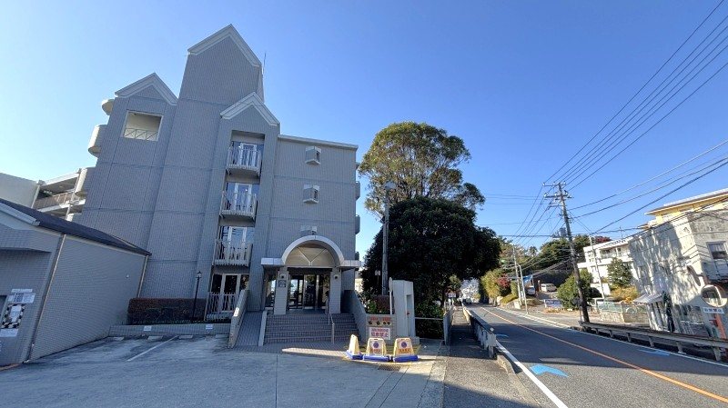 マンションエントランス:国道135号線沿いでアクセスが良いです。月極駐車場は道路向かいで募集が行われております。(R7.12時点)また、同じ道路沿いにはJR東海道線真鶴駅やエスポットモールがあります。