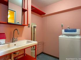 【洗面所】やわらかなピンク色が印象的な洗面所は、どこか懐かしさと温かみを感じさせる空間です。