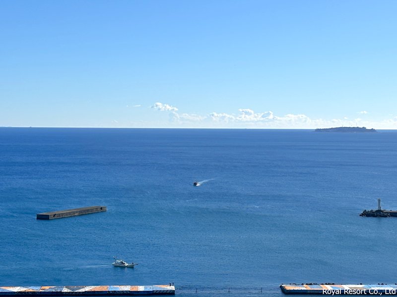 【初島】熱海らしい海景色に、初島というアクセントが加わった、最上階ならではの眺めです。