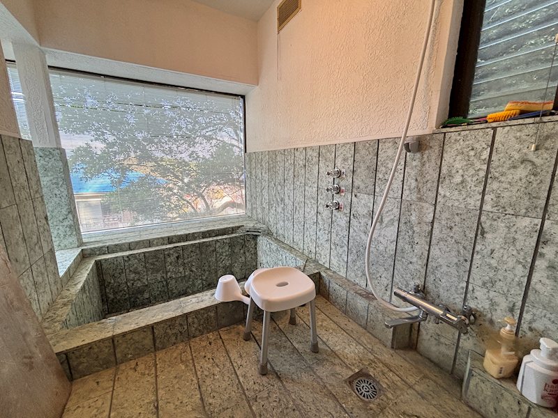 温泉権利は2026年7月29日迄あり、伊豆石を利用した浴室にて温泉を楽しめます。