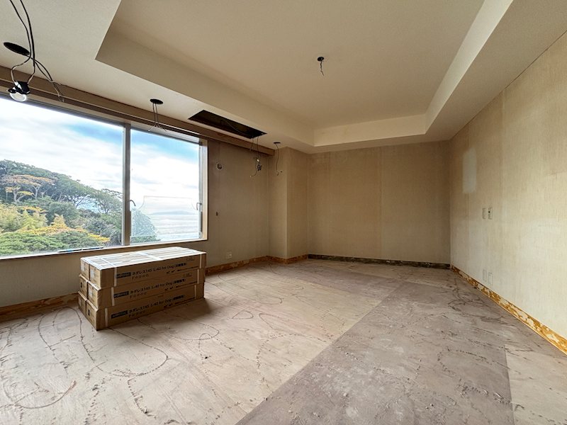 美しい景色と豊かな自然の残る真鶴半島よりパーク・セレノ真鶴アスールより、〈南東向き・角部屋〉のプレミアム住戸をご紹介いたします。海を間近に感じていただけるこちらのお部屋は、現在リフォーム中です(完工予定/2026年2月13日)。室内は間取りの変更も行い、全居室から海をお楽しみいただけるようになる予定です。広々としたリビングダイニングや、大きな窓から差し込む明るい光を是非一度ご体感ください。よろしくお願いいたします。