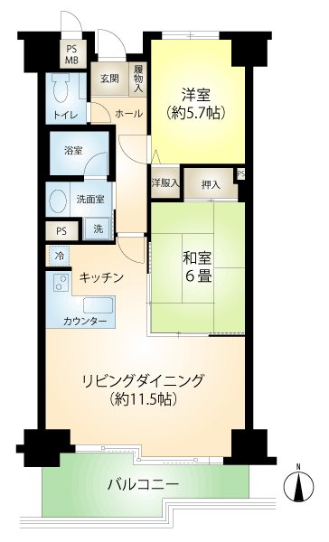 | 設備 | L字型キッチン、2口コンロ、カウンターキッチン、室内洗濯機置場、洗濯機置場、押入、収納有、物置、トイレ有、バス・トイレ別、バス有、洗面台、玄関ホール | ||