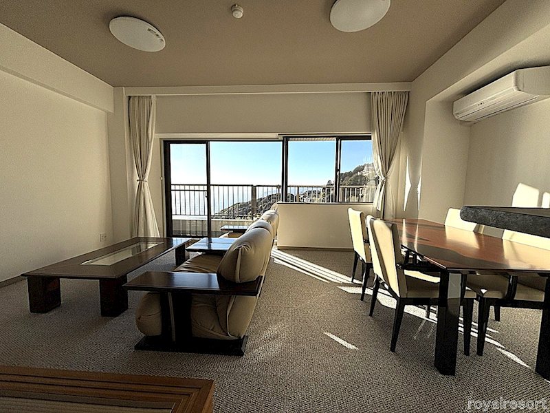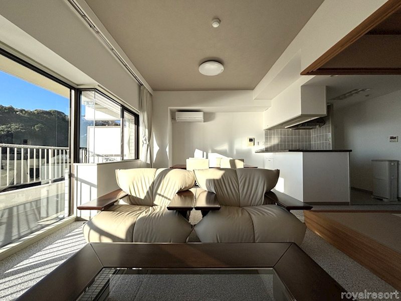 この伊豆エリアが好きでリゾート利用として所有しておりました。室内に残っているソファやテーブルなどを残しておきますので、そのままご利用頂ければと思います。マンション内には屋外プールやテニスコートなどもあります。また温泉大浴場や家族風呂もあり、設備が充実しています。車も平置き駐車場になるので、機械式駐車場と違い、車の大きさを気にせず、車を停めやすいのも助かります。どうぞ宜しくお願い致します。