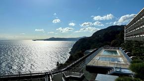 【眺望】左を見ると初島、遠謀には伊豆大島を眺めます。