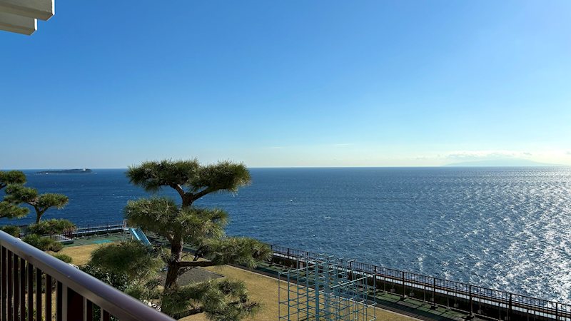 お部屋は上層階の為眺めは素晴らしく、伊豆半島から真鶴半島まで海一望の景色を全居室からお楽しみいただけます。