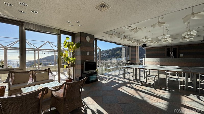 温泉大浴場がある棟の共用スペース、ラウンジ。