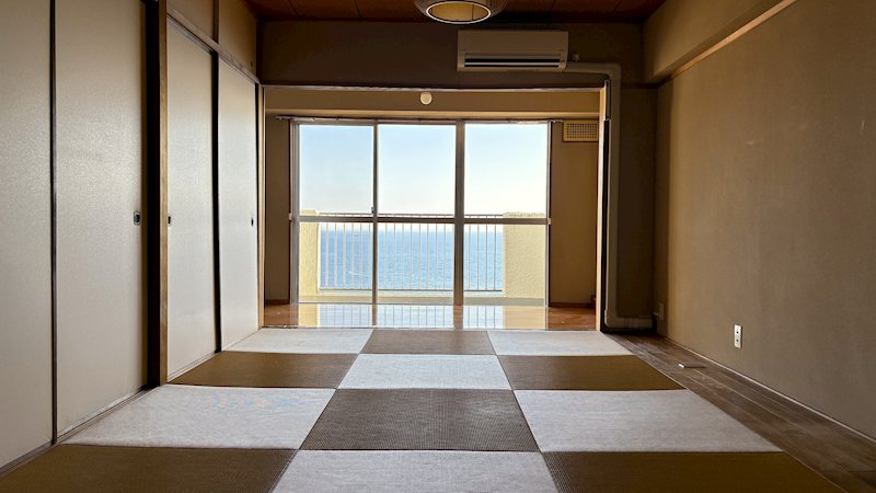 共用施設充実の熱海サニーハイツ。水平線一望のお部屋。