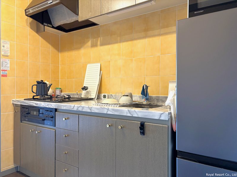 【キッチン】使い勝手に配慮されたキッチンは、調理スペースと収納をしっかり確保。日常の料理から簡単な作業まで、快適に行えるレイアウトです。