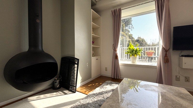 室内はきれいに保たれており、リビングには暖炉やワイドなバルコニー等リゾートらしい造りとなっております。