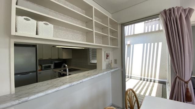 キッチンカウンター:上部収納付きです。