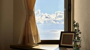 【海の眺望】正面には初島、奥にはうっすら伊豆大島を遠望します。お写真では伝わらない壮大な景色がございます。