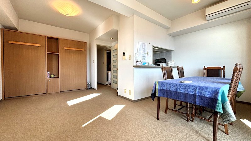 【リビング】同じ角度からのお写真です。左手にはクロークに見えますが収納ベッドが隠されています。