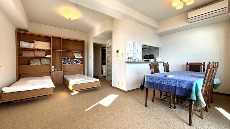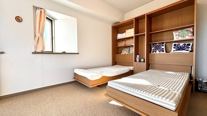こちらのお部屋はスパックス熱海伊豆山ならではの、収納ベッドが二基設置されており、空間を広く使用するための工夫が施されております。素敵なお部屋になっておりますのでぜひお問い合わせください。