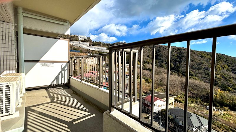 【バルコニー】東側が開口部になっております。正面には伊豆山の山々と海が同時に目に入ります。