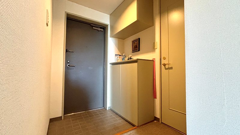 【玄関】コンパクトな玄関スペースですが、収納は十分配備されております。
