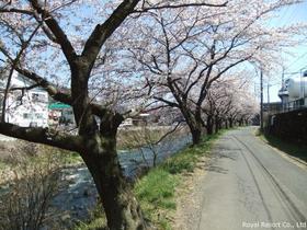 【春の千歳川】熱海側約200mにソメイヨシノ40本、大島桜20本の桜並木があり、春を告げる桜の名所です。