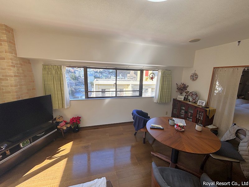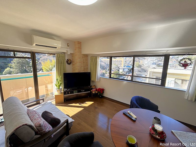 四季の街・湯河原町の千歳川沿いに建つ【ダイアパレス悠郷湯河原】から7階角部屋住戸のご紹介です。千歳川の穏やかな流れと山の景色を身近に感じられる、湯河原らしい落ち着いた住環境が魅力の当レジデンス。角部屋ならではの明るさと通風の良さに加え、室内からの眺望も心地よく、現地に立つと写真以上に開放感を感じていただけると思います。65.28㎡の2LDKは、リゾート利用から定住まで幅広く対応できる間取りで、和室を寝室として利用するなど、実用性の高さも印象的です。また、館内の温泉大浴場は、日常の中で湯河原の魅力を存分に味わえる、嬉しいポイントです。静かに過ごしたい方、自然を身近に感じながら無理なく暮らしたい方に、ぜひ一度ご覧いただきたい住戸となります。現地にて、住まいの雰囲気や周辺環境を含めてご確認ください。現在、居住中不動産のため、ご見学は事前のご相談をお願い申し上げます。