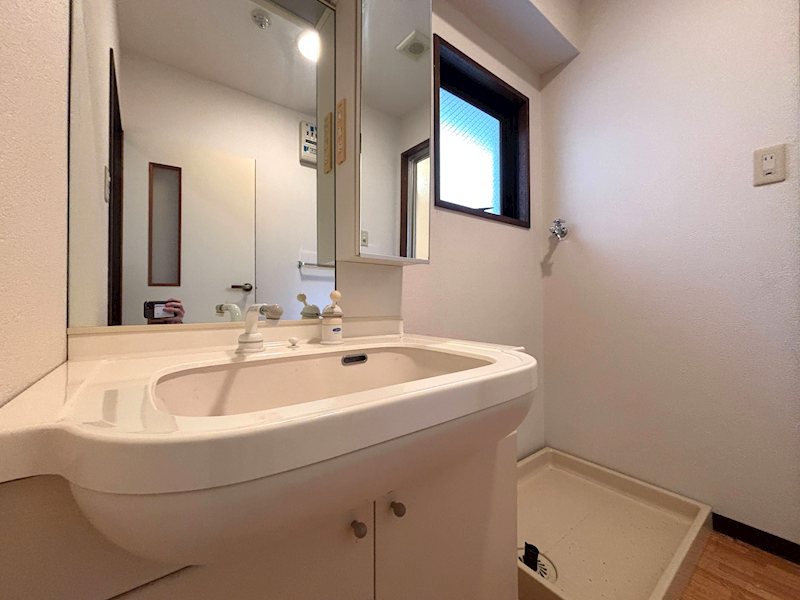 【洗面所】ゆとりのある洗面所スペース。窓もあり明るい空間です。