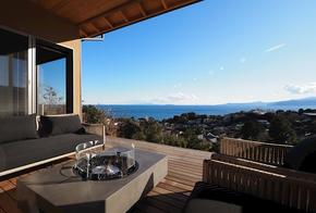 【アウトドアリビング】室内と連続するように設えられたアウトドアリビング。光と風、そして眺望を暮らしの一部として取り込みます。