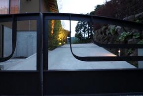【ゲート】電動による自動開閉を備え、機能性と美しさを両立。ゲートをくぐる瞬間から、この別荘ならではの時間が始まります。