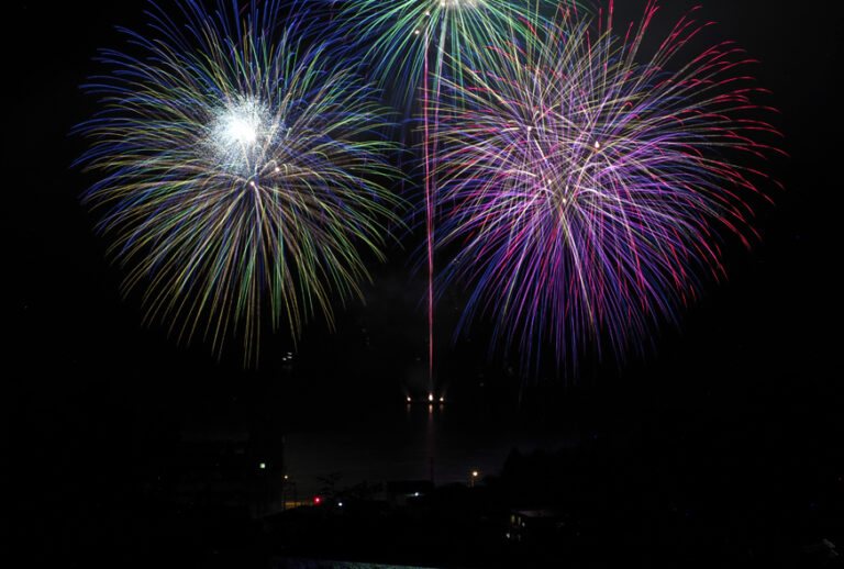 【花火大会】夏の夜、沖合から打ち上がる花火が、静かな海面と夜空を鮮やかに染め上げます。この地ならではの特別な夏の風物詩です。