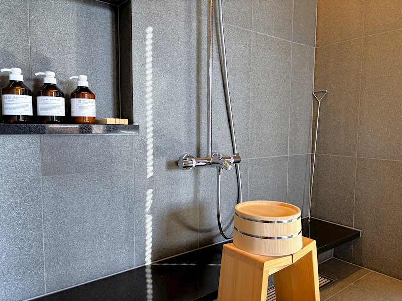 【浴室】素材や照明にも配慮し、身体を包み込み、思考をほどいていく落ち着いた浴室空間です。