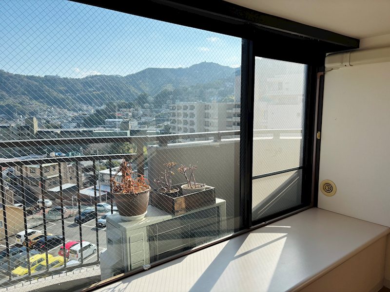 バルコニーです。遠望に熱海の山々を臨みます。