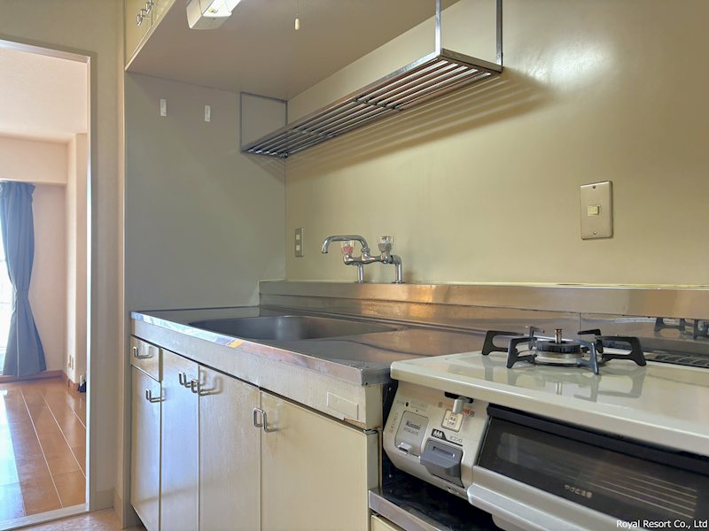 【キッチン】リビングダイニングに隣接したキッチンは、配膳や片付けもスムーズ。限られた空間を有効活用した配置となっています。